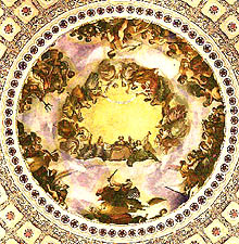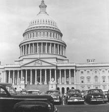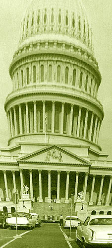 backwards. I started to cry. 2024 UPDATE: Some 75 years later, I've discovered a possible explanation. A physical therapist suggested that perhaps I have a slight congenital abnormality that makes it difficult to bend my neck back all the way, as the first child shown here is doing. In order to look straight up, it's necessary to also bend at the waist, like the second child. But now I'm unbalanced. My weight is over my heels, leading me to fear that I'm about to topple over backwards. Ever since this imagined episode, in similar situations I've been afraid I'd fall down and go boom. My toes curl downward in a vain attempt to grip the floor more tightly. I dread a loud noise or someone bumping into me. I keep my eyes fixed on the floor and take short steps, trying to reach the safety of a side room where the ceiling is only eight feet high. Field Trips As a child, it helped if I had something or someone to hang onto, usually one of my parents. I recall that my first-grade class visited the museum of natural history at Ohio State, where mummies and dinosaur skeletons loomed over us in great echoing marble halls; I had to hold onto someone's hand, and classmate Donna Marie Borland was there for me. Churches were frightening, too, of course, but once I got used to a sanctuary after a few weeks, I was able to walk into it unaided. The rotunda of the Capitol in Washington, D.C., soars 180 feet above the floor. I've briefly endured this space on two occasions.