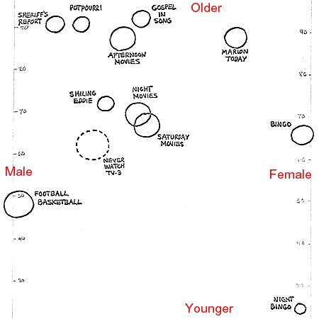 We note also that the demographic figures (men, women, adults, children, people) are even less certain than the homes figure, due to the fact that they're based on a somewhat smaller sample. And we have already noted in Assumptions Two and Three that for several reasons the total audience figures are less reliable than the average audience figures. Therefore the total-audience demographic figures, which are probably the most useful for convincing advertisers of the magnitude of the TV-3 audience, are unfortunately the least precise figures statistically. The users of this survey should be cautioned not to take the results too literally. That figure showing three thousand people in the total audience really means that the total audience is between 2,000 and 4,000. So Why Bother? The question might be raised, why take a survey at all if the results are going to be this nebulous? The answer is that there are only two other alternatives for determining the audience size: guesswork, or a much more thorough and complicated survey. On the one hand, even an inexact measurement is better than an "educated guess." On the other, a more complicated survey would also be much more expensive, and it's likely that it wouldn't be justified by the gain in accuracy. The proposed survey provides as much accuracy as is needed to answer the questions we posed, and it does it at low cost. We said that a second purpose of this survey is to "show the TV-3 programmers what sort of public acceptance their current offerings are getting." We've indicated a hypothetical set of data for the TV-3 local news, 6:00 to 6:15 p.m. Monday through Friday. If the TV-3 programmers saw this data, what might it show them? Well, the audience seems to be of a fairly substantial size, which is encouraging; but more than half of it is children, perhaps left over from the preceding "Jolly Jingles" program. Only 300 adult men in the whole city see the program at some time during the week. If the survey came up with figures like these, the TV-3 programmers should look at the newscast; is it for some reason interesting only to women and children? If so, an effort should be made to include more that would interest the man of the house. If not, the problem might be one of publicity, and in that case a drive should be launched to encourage men to watch. We also said that a third purpose of the survey was to determine in a general way what was being watched on the other eleven channels. From the table of data, we can determine that 29 homes in the sample were viewing TV-3 from 6:00 to 6:15 p.m., 159 homes were viewing the Columbus commercial stations (Channels 4, 6, and 10), 14 were viewing the Columbus ETV [now called public television] on Channel 12, and 122 were viewing a distant station. So 151 out of 324 TV sets, or 46.6%, were tuned to something other than a Columbus station. But no one was watching Channel 11 during this quarter-hour. Maybe another station should be on cable channel 11, if no one wants to watch the current offering. Conclusion So those are some of the kinds of results that could come about if the proposed survey were made. There has been no previous work in this field (i.e., the measurement of the CATV audience in Marion, Ohio), but there has been an enormous amount of work in related fields (i.e., the measurement of radio or broadcast TV audiences in other cities).