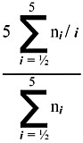 above, this turns out to be five times (1/½ + 3/1 + 4/1½ +