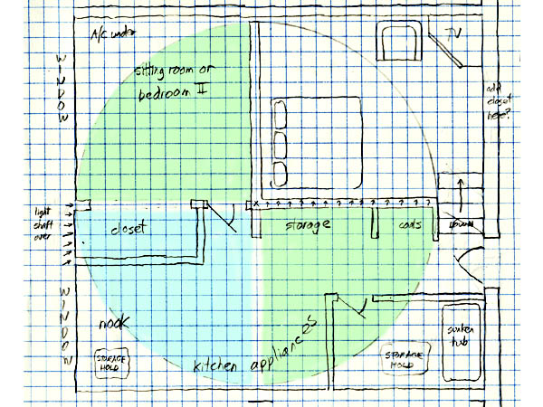 bedroom. Rotate the turntable 90 degrees to hide the bed, and