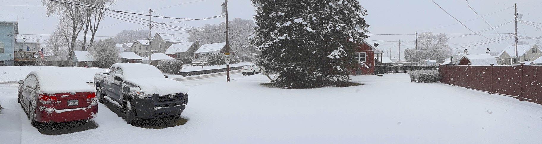 Another pair of evergreens has grown larger, as has my neighbor's vehicle.