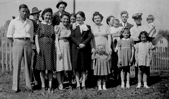 whole Thomas clan gathers about 1942. My future mother is
