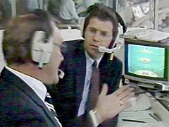 6:15 Next, the talent will pre-tape the opening segment of the show. All you need to do is call up their names, e.g., 0073 John Sanders and 0078 Color. But if Color has been typed as Steve Blass and the actual color man is Jim Rooker, you'll have to retype 0070, 0075, 0078, 0080, and 0085.