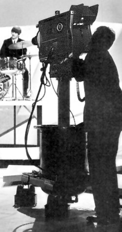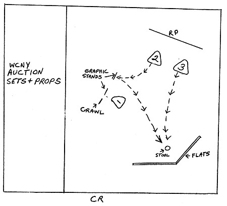 Then Vin suggests that the poem could be included in the rap. Hes backed up by our instructors, Executive Producer Richard Barnhill and Production Consultant Don Carroll, who are apparently meeting the talent for the first time. We're behind schedule, and the station's Operations Director comes in to warn Vin that if he isnt finished taping by 12:50 pm, hell lose one of his machines. Were using one of WCNYs video tape recorders to play back segments and another to record the complete show, but the station itself will need to use one of those VTRs at 1:00. However, we intend to record as scheduled from 11:45 to 12:15, so there should be no problem. The station doesnt allow us students to actually operate the incredibly expensive quad VTRs nor handle the two-inch-wide video tape. Station engineers do that. To make sure they cue up the correct tapes, we do have a student A.D. in the tape room, Victor Lisnycizyj. Lighting terminology: Limbo lighting means illuminating the people but not the background, which thus appears black. Scoops are lights mounted inside huge bowls that soften the source by spreading it out over a wider area. Like the more intense spots used for cross-lighting, the scoops hang from a metal grid suspended 13 feet above the floor. Because our cameras are black and white, we dont need to use nearly as many lamps as would be necessary for the more complex four-tube color cameras. In fact, at WCNY the standard illumination level is only a dim 45 foot-candles. When you're on the set, it's hard to realize that you're actually in a lit studio. Audio engineer John MacKerron, who has been hearing bleed-through from the strong squeal produced when tapes are rewound at high speed, decides hell have to punch the button off to eliminate it, not merely fade down the pot.