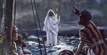 When the disciples told the story later, they claimed there had been 5,000 people at that impromptu supper, and their listeners jumped to the conclusion that all 5,000 had gotten a complete meal. Mark 6:31-44~ Water-Walking As night fell, Jesus dismissed the crowd. He told the disciples to sail to the town of Gennesaret ahead of him, while he went up the hill by himself to mourn the Baptist and to pray. Matthew 14:22-23~ Why do you always pray privately? James asked him. Teachers are supposed to lead all their students in prayer every morning. We had a whole crowd of people here, hanging on your every word. You and the crowd could have prayed as a group, and surely God would have heard the supplications. A waste of time, Jesus muttered. God already knows what we need before we ask him! But if all the people together had raised their arms to Heaven, shouting Amen, and if everybody had prayed loud and long ... We mustn't go babbling on like the heathen. They imagine that the more they say, the more likely they are to be heard. And hypocrites love to say their prayers standing up in public, so everyone will see how pious they are. No, it's better to go off by yourself and pray to your Heavenly Father who is in secret. Your Father sees what's done in secret, and he will reward you. Matthew 6:5-8~ So Jesus left us, and the rest of us got back aboard my boat and cast off for Gennesaret. Facing a strong headwind and a nasty current, we made only slow progress. In fact, it was the middle of the night before we reached the shallow water near the town. Andrew had lost track of where we were, but then he looked up and saw a man coming toward us. Look, he cried, there's someone walking on the water! Those are words you don't normally hear, especially if you're out on a lake in a boat. Therefore James jumped to the conclusion that it had to be supernatural. For him it was a paranormal appearance. Walking on the water? he exclaimed. It must be a ghost! No, it's me, the man called from the shoals. Don't be afraid.