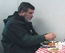 During the month that I was in the city, the weather was almost always clear and cold. It was very cold at times, with typical morning lows around 5º above. But, unlike the winters in Pittsburgh, there was almost no wind. Dressed as I was in long underwear and the heavy ISB uniform, I had no trouble. Sometimes I could even go outside in the afternoon without a coat. However, the city is subject to temperature inversions, which trap the stale, dusty air near the ground. The air gets so thick that you can taste the dust. We welcomed our one brief snowstorm, which came on the morning before the Opening Ceremony, because it cleared out all the haze that was obscuring our view of the surrounding mountains. There were some flurries from time to time, and my birthday was a rainy day. But I didn't mind.