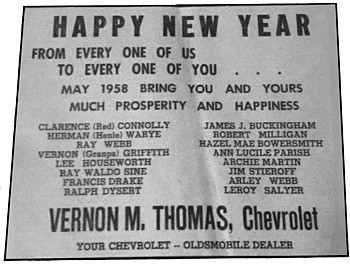 All the printed material read 153 North Franklin Street, so the business retained that address, though strictly speaking it referred to what was now only a parking lot with a Sign Pole. My father retired in 1973, and the Mills family took over the dealership. Sadly, small automobile dealerships in small towns are a slowly dying breed. Some 35 years later, Mills Chevrolet-Oldsmobile-Pontiac went out of business.