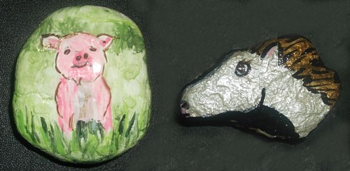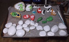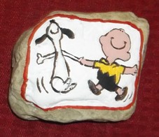 Mary Robinson-Foster is 3½ years younger than me, though we've never met. She also paints miniatures, and many folks have come to know her as Grandma Rocks. It seems that in Richwood, Ohio, as well as other parts of the state, you can chance upon small stones that have been painstakingly decorated with cartoon characters, fake candy, landscapes, and other images.