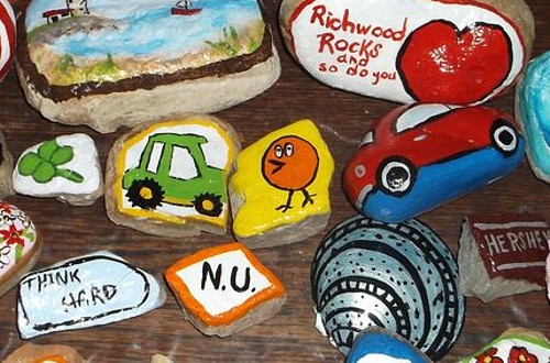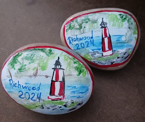 Now, between that find and some other stones that folks had given her recently, she declared that I do believe that I have enough. Earlier that year she'd started a Facebook page called Richwood Rocks to show her creations. Now, she said, I think it's kinda neat that the new rocks that I'll be doing will truly be Richwood Rocks. By 2020, Mary estimated she had made 5,000 of these objects in five years. Here are some examples.