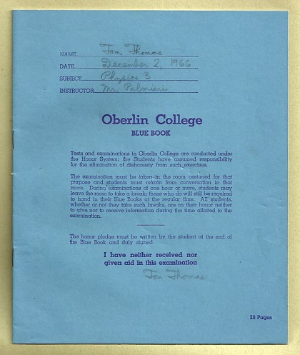 10, 2018 Two years ago on one of his vanity cards, TV producer Chuck Lorre recalled the high school and college essay exams where I purposely tried to hide my lack of preparation behind a voluminous cascade of impressive-sounding words. My theory was that a thick stack of single-spaced purple prose would be so off-putting to the teacher, he or she would slap a C on the paper in order to avoid wading through a lot of cursive bull$#!+. As a student, I never tried to fill a page with meaningless verbiage. But here's a parody of such attempts. Written in cursive longhand for an illustration in my 1969 college yearbook, the Hi-O-Hi, it purports to be the last page from one of the standardized Bluebooks in which we wrote our examination answers.