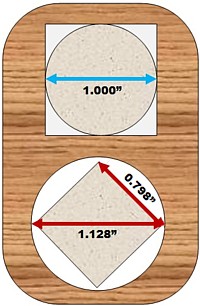 1.128 inch along the diagonal. By the Pythagorean theorem, the