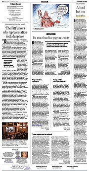 12, 2016 Under the new four-team college football playoff format, the second annual national championship game last night (Alabama 45, Clemson 40) drew noticeably less interest than last year's much-ballyhooed first game. At least around here it did. Pittsburghers care about only Steelers football. Clemson plays in the same conference as the University of Pittsburgh, but that means nothing. Yesterdays advance story about the upcoming college championship was buried on Page C-5 of the sports section.