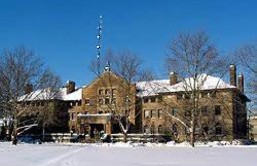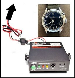 with the clock hanging from the ceiling of WOBC's Studio A?