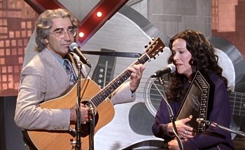 Among the SCTV cast members were Eugene Levy, seen above as a newscaster with a cheesy name he pronounced Cannon-Bear, and Catherine O'Hara. Skipping forward nine years, Christopher Guest was one of the stars of the movie This is Spinal Tap. Five similar Guest mockumentaries would follow, of which my favorite turned out to be 2003's A Mighty Wind (below).