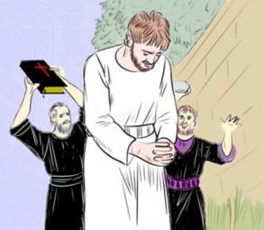 Arrest Accordingly, after having entered the vehicle, I was apprehended by the pious constable and dragged before the pious justice of the peace. On inquiring for the authority by which I was thus arrested and retained in custody, I was presented with several ficticious or spurious charges, evidently for the purpose of detaining me until the brother holding the note could make necessary preparation for securing his object. I was then insulted and abused by three-fourths of the citizens, from the right Reverends down to the general agent and their subordinates. The pious justice permitted each of them to assert their opinion of law, justice, and the guilt and ill desert of the heretic who now stood before them as a prisoner. It was determined that I should be conducted to the county jail.