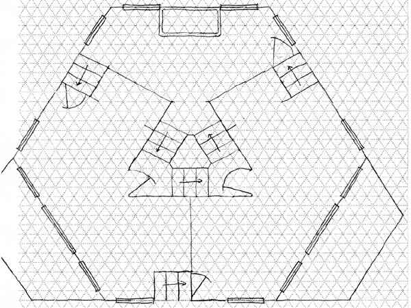 unlabeled arrow on stairs points in the direction you'd go to climb up.)