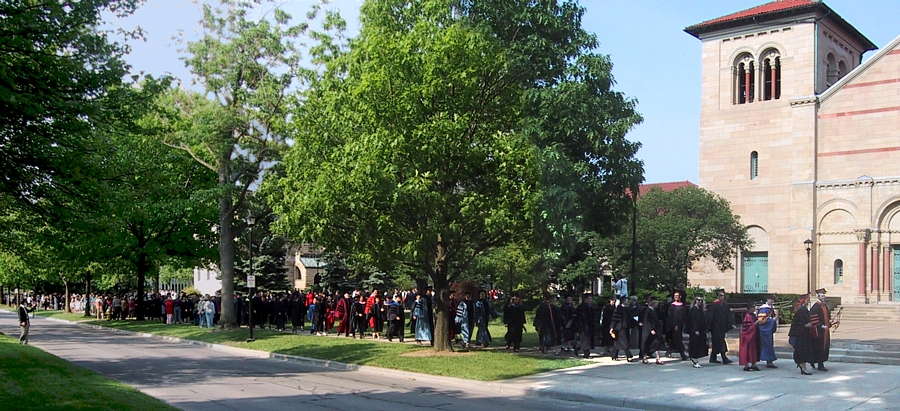 procession stepped off at 9:30 am, headed north on Professor
