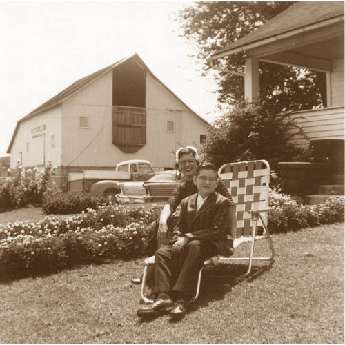 And in the fall of 1958, my mother and I posed beside a walk lined with chrysanthemums.