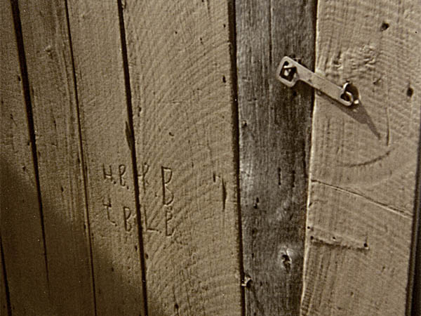 The Buckingham children carved their initials on this shed, where they could still be seen eighty years later in 1971.