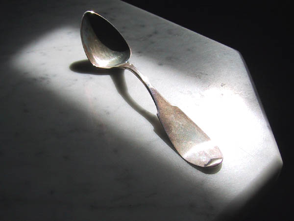 a family heirloom: one of a set of 12 coin-silver spoons (six