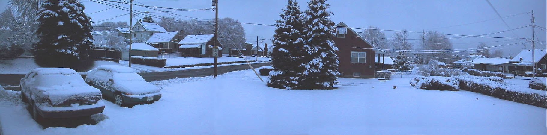 Another pair of evergreens has grown larger, as has my neighbor's vehicle.