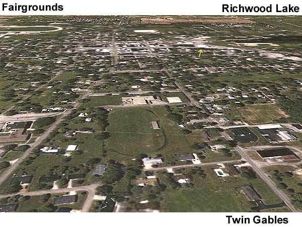 the bottom right corner is our house, Twin Gables, its black