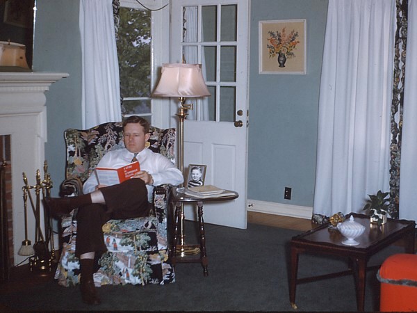 clockwise, there's my father sitting in the wing chair, beneath the