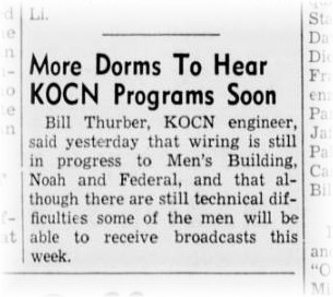 Bob continued, Finally in the fall of 1950 I believe it was Sunday afternoon, November 5 we went on the air permanently. We had a gala open house for students, and President Stevenson did the first broadcast. We were off and running. |