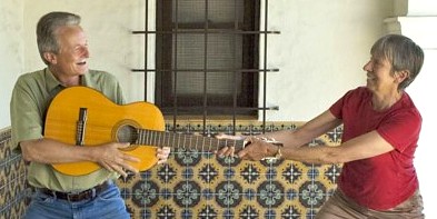 are the Schomers mock-fighting over one of their guitars in 2008. |