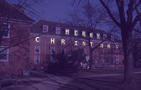They made us stop before Mrs. Smith, housemother of Dascomb, arrived, however. And a friendly truce was arranged. A couple of weeks later for the Christmas season, both sections co-operated for a regular display every evening. The lights in our eighteen rooms spelled out a greeting for everyone in the Men's Quad: