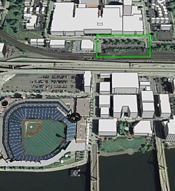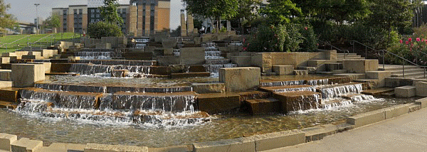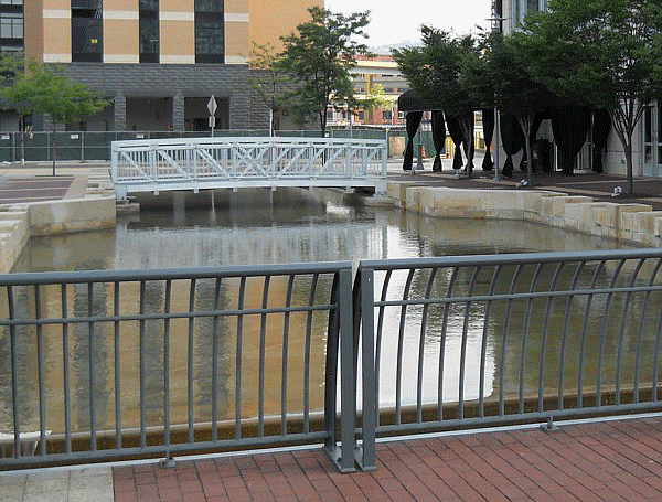 A quarter mile downstream from that foul pole, I've discovered that the final connection is recalled in the 21st-century water feature shown below, Canal Square. |