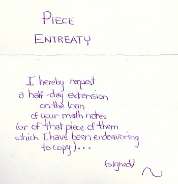In my day we called it the Conference Room. Near the door sat a four-foot-high plywood cabinet that had once enclosed the station's teletype machine to muffle the sound. Over on the far side lay some discarded organ pipes. On this occasion, as usual, no one was using the room, and here I was able to talk to Jan without interruptions. For a while she sat inside the cabinet. For a while she stood by the window, gazing out over the fire escape onto rainy Woodland Street, and I joined her there. She spoke partly in French, saying things that I took to mean Poor, poor Tom. I tried to explain to her the next day (in the note I've been quoting above), even though I had absolutely nothing to say to you, I just wanted you to spend a little time with me and thereby partly restore my confidence in myself. And that's what I was trying to say to you, although since nothing seemed to be going right yesterday it didn't come out very coherently at all. I'm sorry.