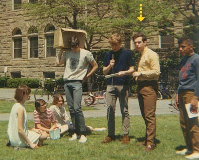 News WOBC presented newscasts around 6:00 and 11:00, just like a TV station. We also aired a five-minute update every couple of hours. Around 6:00: When I enrolled at Oberlin, the 15-minute evening news began at 5:55. Three months later it had moved to 5:45, and on February 13, 1967, it moved even earlier to 5:30. Almost all the copy came from the UPI wire service at first, but we gradually began to include more local stories. Because the student newspaper published just twice a week, WOBC was the only daily news medium of the Oberlin College campus. On November 12, 1967, the Guide urged: Listen to WOBC for the news coverage that kept the campus and the rest of the country informed during the Recruiter Crisis. Four daily newscasts, plus a complete roundup and commentary on OBERLIN DIGEST, makes WOBC the best way to be informed! At 11:00: Since 1963, OBERLIN DIGEST had been our news flagship. This half hour was described on October 3, 1966, as a complete news summary plus a special feature. For example, throughout one week in March 1967, Student Senate candidates addressed what they consider to be the main campaign issues in preparation for the March 21 elections. Here are some other DIGEST listings. I've added explanations in red. |