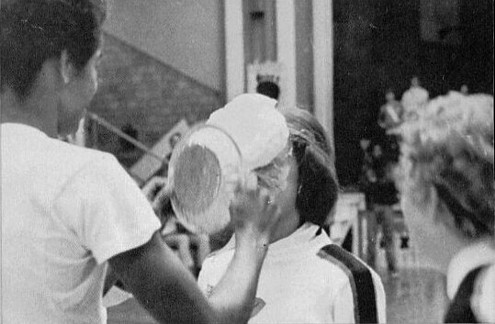 At the age of 27, I had moved to Washington, Pennsylvania, to become the program director of a local channel. Many of our telecasts on TV-3 involved the activities of the three local high schools: Immaculate Conception, Trinity, and Washington. Washington High Schools 1974 yearbook is now available online, thanks to classmates.com. And therein I find the following photographic evidence proving that Im not dreaming. A ceremony did actually take place, and not merely once. Was it slapstick? Was it sadism? Though I observed this public ritual with my own eyes, I didn't understand it, and I only half remember it.