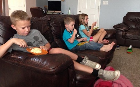 Niecephews have been fed (Carls Jr) and entertained (Carls Jr play place). Uncle of the year! Now watching 9-yr-old niece's gymnastics class, not at all creepy, don't worry. "Can we?" Look, if you can do it quietly and without hurting anyone, the answer is yes. UPDATE: eating dinner in front of the TV is not something that can be done quietly and without hurting anyone.