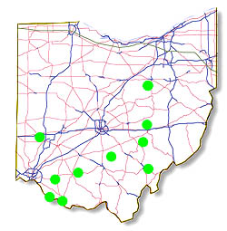 Then a few years ago, while driving through northeast Ohio, I heard a Chagrin Falls radio station identify its location as Bainbridge-Cleveland. Bainbridge? I know where that is. That was the hometown of Sally Flowers. It's in southern Ohio, 60 miles east of Cincinnati. How could a radio station serve both Bainbridge and Cleveland, on opposite ends of the state? Is there another Bainbridge near Chagrin Falls? So I got out the 1987 edition of the DeLorme Mapping Company's Ohio Atlas & Gazetteer. This book has 64 pages of highly detailed maps at a scale of 1:150,000, or less than 2.4 miles to the inch, and it also has an index. I was amazed to discover that not only are there two Nortons, two Bainbridges, and three Oranges, but the state has a total of 295 duplicate place names that are used by 701 different locations! Here are the 232 names that appear twice. Ready?