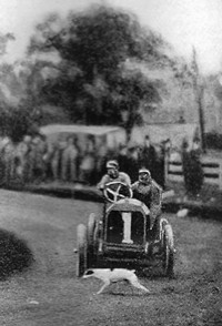 I'm simulating a conversation with author Bellamy Partridge, using excerpts from his 1952 book Fill 'er Up! and adding illustrations and other information I've found on the Internet. In Part One, wealthy motorsports enthusiast Willie K. Vanderbilt established the Vanderbilt Cup Race in 1904. It was contested over public roads on Long Island. The course was considerably revised for a second annual race in 1905, with more turns to challenge the drivers. Now let's continue the saga.