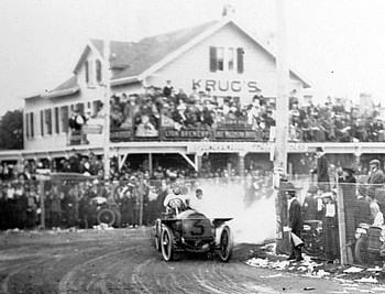 Hardly was the last car out of sight when word came that a man had been killed at Krug's Corner where the Hotchkiss driven by Elliot Shepard, W.K. Vanderbilt's cousin, had gone out of control and charged into the surging crowd.